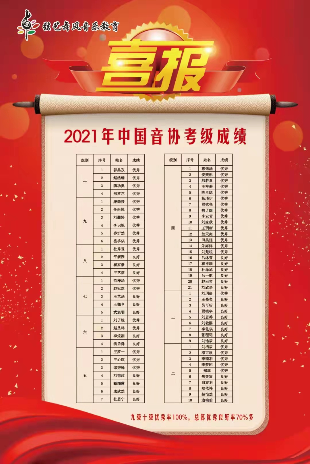 我校音协考级成绩全部通过,优秀良好率再创新高!加油,宝贝们!