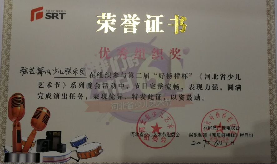 弦乐团获得《宝贝好榜样》优秀组织奖